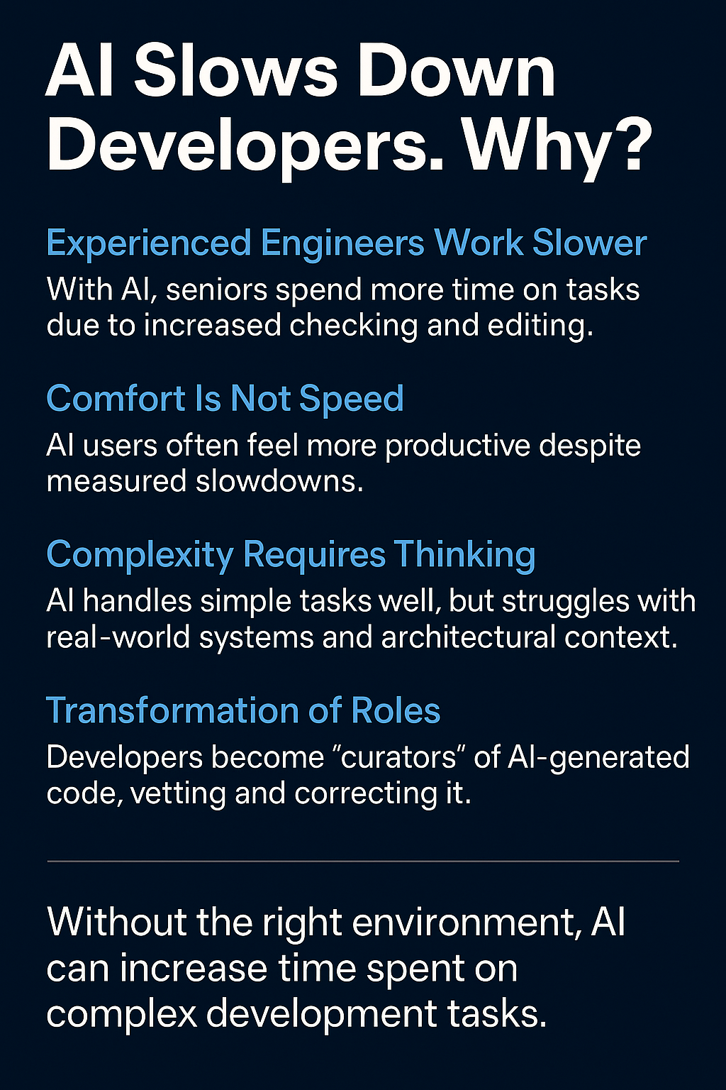 Yet the latest studies show something few are willing to say. In many cases, AI does not speed up developers; it actually slows them down. The people who are impacted the most are those who excel at their jobs.
